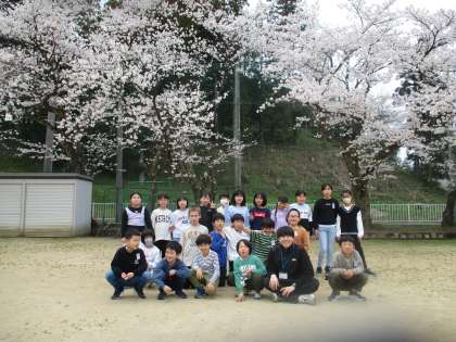 先週の木曜日から4年生として新学期がスタートしました。今日は校庭に咲く桜がとてもきれいだったので、桜の前で集合写真を撮りました。