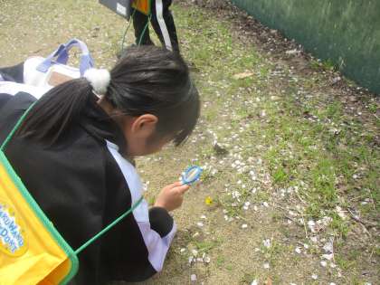 今日から3年生にとって初めての理科の学習がスタートしました。子供たちは、春の生き物を熱心に探し、観察カードに丁寧にまとめる姿が見られました。