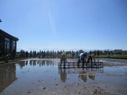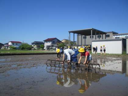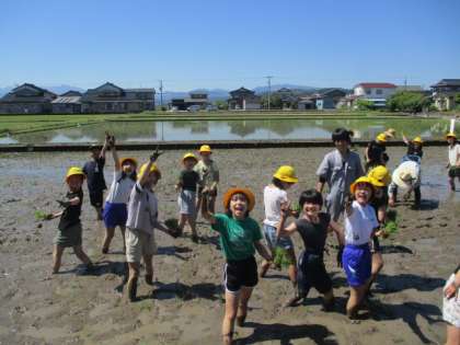 晴天の中、普段はなかなかできない手植えを体験することができ、子供たちの笑顔が輝いていました。