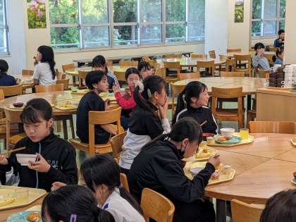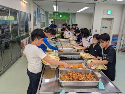 みんなで楽しい夕食の時間です。とりの唐揚げ、コロッケ、デザート等、おいしくいただきました!