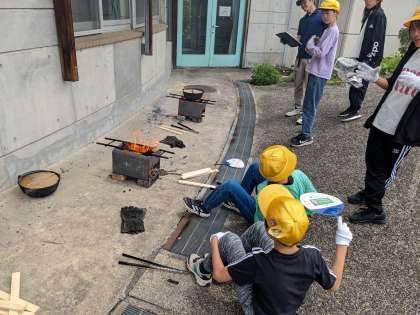 5月23日 6年生宿泊学習 かまどで調理!
