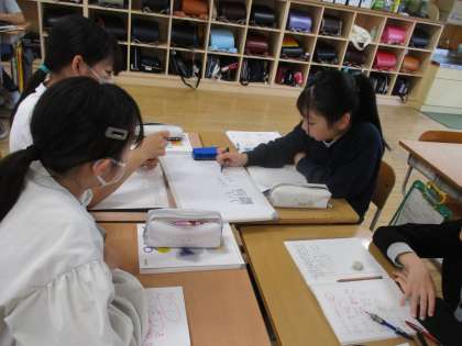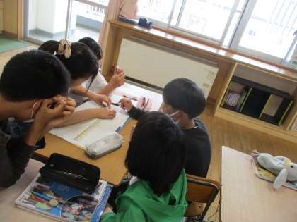 グループ活動を通して、課題解決に取り組んでいます。友達の話を聞いて自分の考えを深めたり、一緒に解き方を考えたりしています。