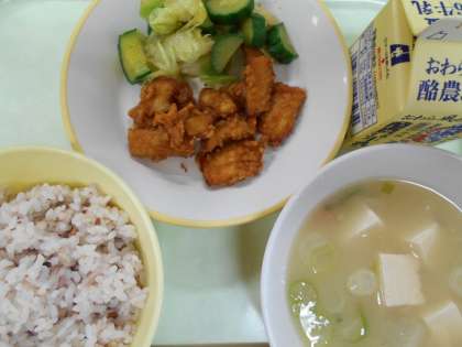 雑穀入りごはん 牛乳 いかのかりん揚げ 華風和え すいとん
