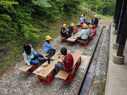 班のみんなで力を合わせ、カレーライスを完成させました。いただきます!!