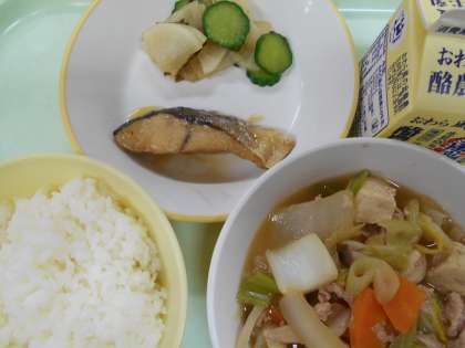 【今日の献立】 ごはん 牛乳 ふくらぎの西京焼き 昆布和え 肉豆腐