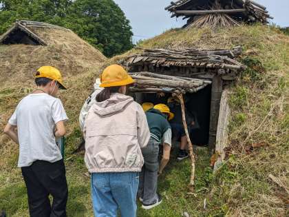竪穴式住居の中に入って、当時の暮らしについて学びました。