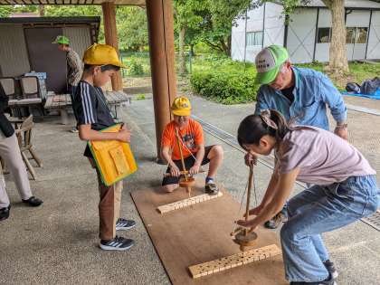 縄文土器風の粘土作品づくりや火起こし体験をしました。
