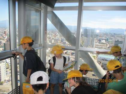 今日は3年生の校外学習がありました。音川小学校の3年生と交流を深めながら、富山港と富山市役所展望台から見える景色や自分の住んでいる地域との違いをくらべながら学びを深めていました。