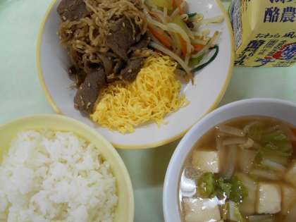 ごはん 牛乳 ビビンバ(焼肉・ナムル・錦糸卵) 中華スープ