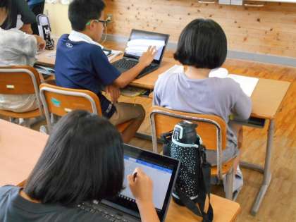 それぞれのやり方で小数のかけ算の練習に取り組んでいました。