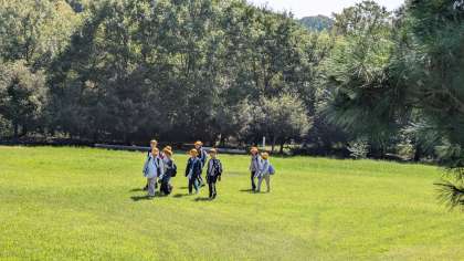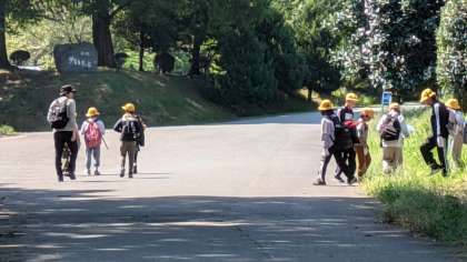 班のみんなで協力して、自然の中でのオリエンテーリングです。