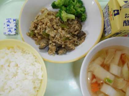ごはん 牛乳 とやまのえごま入りガパオライス ゆでブロッコリー コーンスープ ポケットチーズ