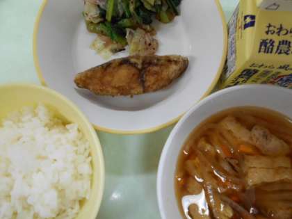 ごはん  牛乳  魚のかば焼き  梅肉和え  沢煮椀