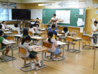 「見守る」と「見回る」の言葉の意味について、動作化しながら確かめていました。