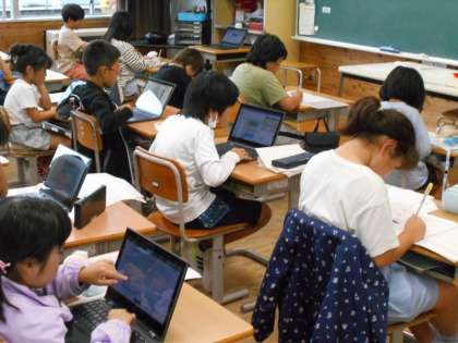 2桁×1桁の計算練習にプリントやクロムブックを使って取り組んでいました。