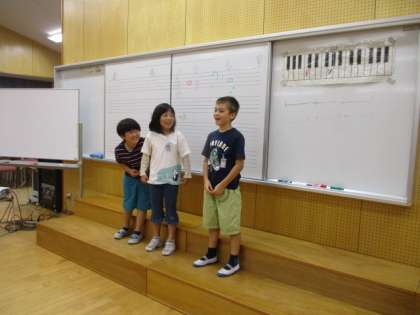 グループに分かれ、出す音の高さや速さ、タイミングを考えるなど、工夫して発表しました。