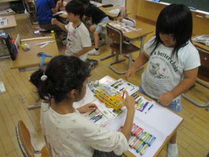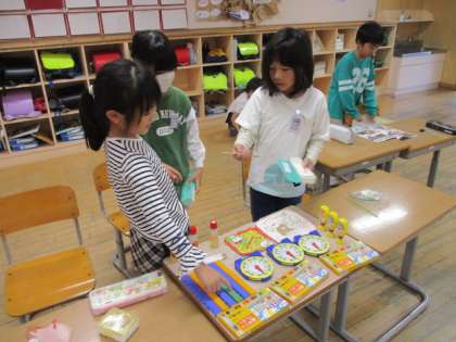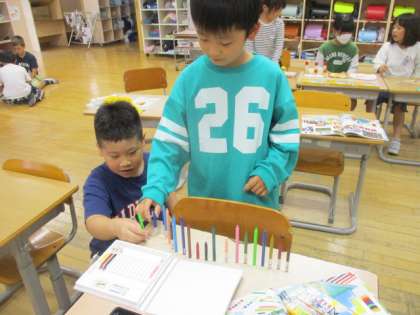 文房具等、自分の持ち物を使って、一人で並べたり、友達と並べたりして、楽しく活動に取り組みました。