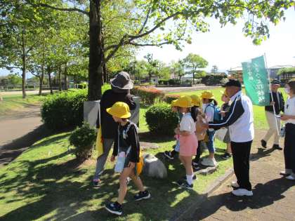 今回は、保護者の方に加え、自治振興会をはじめとする地域の方々にも引率のご協力をしていただきました。お手伝いいただいた方々から、「ここにはお城があったんだよ」など、子供たちが知らなかったことをたくさん教えていただきました。