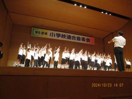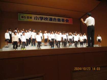 第五区域小学校連合音楽会に参加しました。大勢の前で歌うことに少し緊張していたようですが、練習の成果を発揮して楽しく歌ったり、演奏したりすることができました。