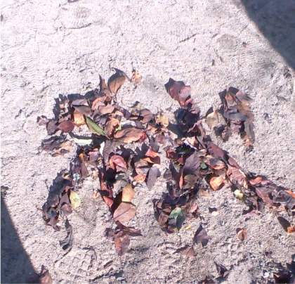 ⑶ 落ち葉で「秋」という漢字をつくりました。