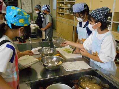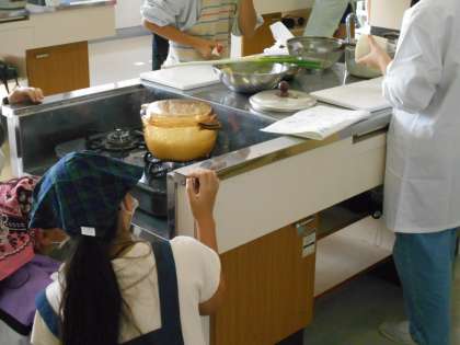 ごはんとみそ汁の調理実習に取り組んでいました。