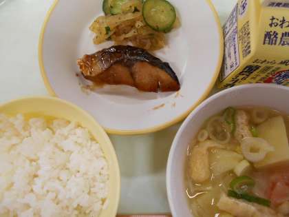 ごはん  牛乳  ふくらぎの照り焼き  大根のえごまサラダ  具だくさん汁