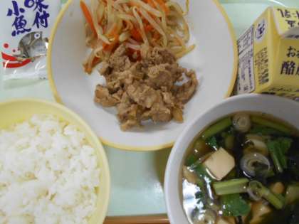 ごはん  牛乳  焼肉  ナムル  中華スープ  味付け小魚