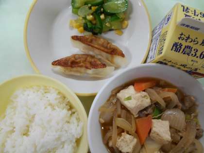 ごはん 牛乳 焼きぎょうざ コーン和え 韓国風すきやき