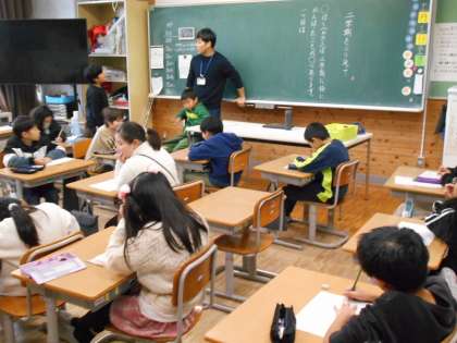 今学期の自分の取組を振り返り、プリントに書いていました。