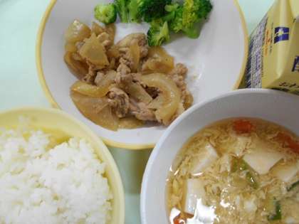 ごはん  牛乳  豚肉のジャンロー  ゆでブロッコリー  かきたま汁