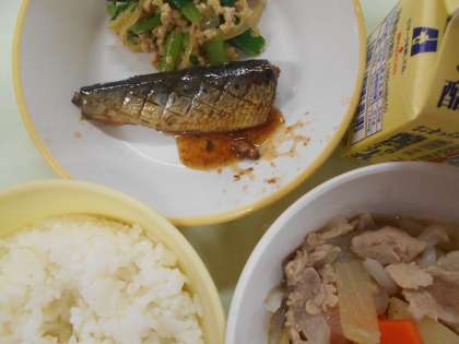 ごはん  牛乳  いわしの土佐煮  納豆和え  塩肉じゃが
