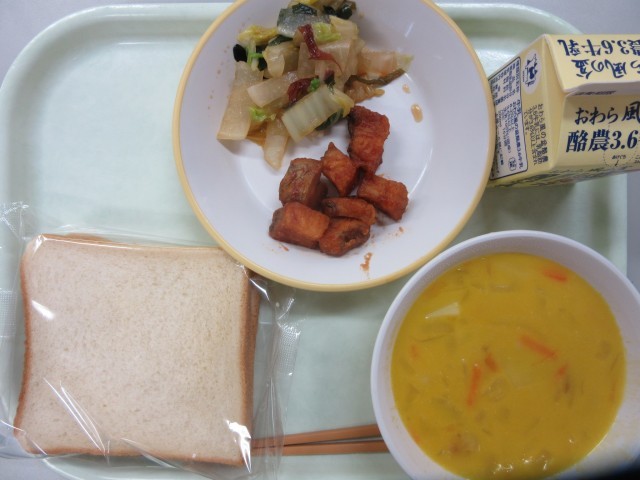 食パン  牛乳  ホキのアングレス  海藻サラダ  野菜ポタージュ