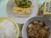 ごはん 牛乳 あわせ和え 厚焼き卵 五目うどん 大豆ふりかけ