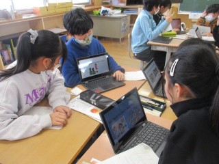 外国語の学習では、自分の考えをスライドを使って伝え合いました。相づちを打ったり質問をしたりしながら友達の話を真剣に聞きました。