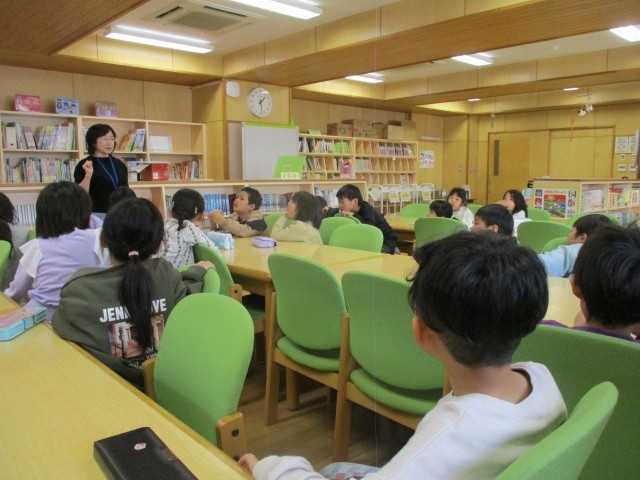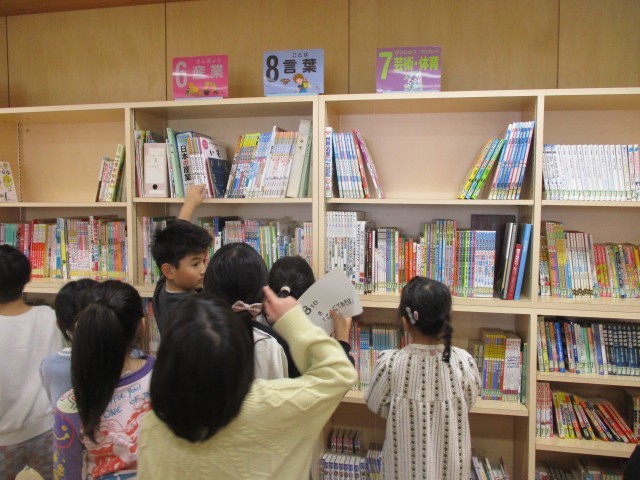 2年生になったので改めて図書室の使い方を司書の先生と一緒に確認しました。図書室のマナーやルールを聞いたり、協力して本を探す活動をしたりするなど、楽しく学びました。早速2冊本を借りました。たくさんの本を読みたい!と喜んでいました。