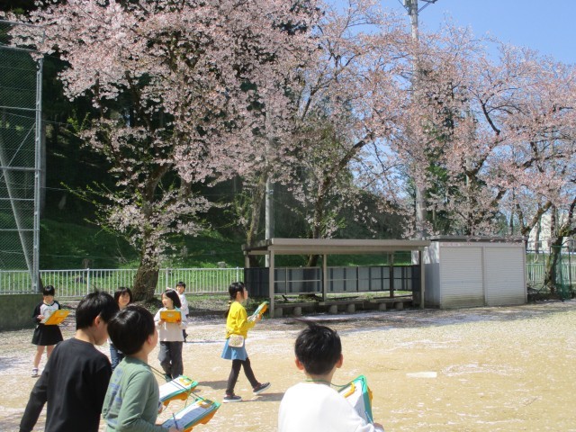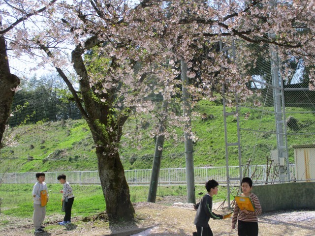 生活科の学習で校庭に春を見つけに行ってきました。散り始めた桜の花びらが春の風で舞い上がったり、タンポポの花が力強く咲いていたりとたくさんの「春」を見つけることができました。