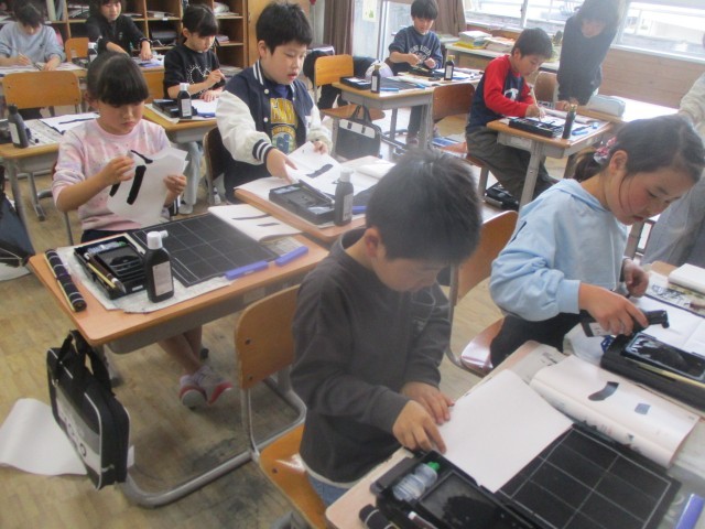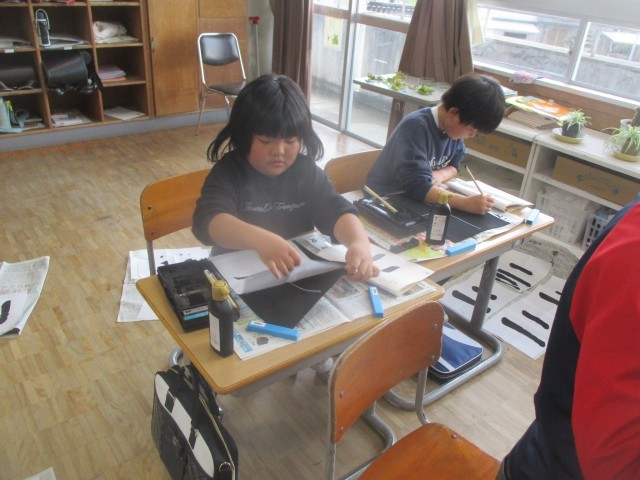 3年生になり、初めての毛筆の学習に取り組んでいます。始筆や終筆に気を付けて、「二」という文字を練習しています。