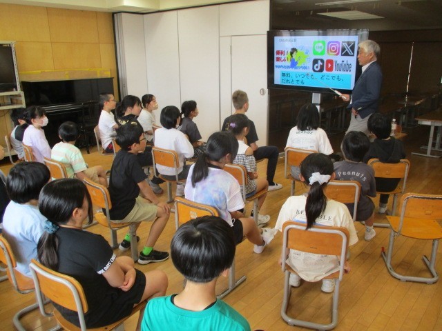 講師の先生をお招きして、情報モラルに関する講座を行いました。子どもたちは、自分がどのくらいインターネットを利用しているか振り返ったり、インターネットが自分たちに与える影響について学んだりしました。インターネットとの関わり方を考えるよい機会となりました。