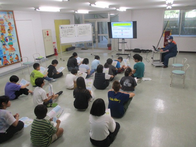 BFCバッジ授与式を行いました。消防署の方よりバッジと冊子をいただいた後、5年生全員で誓いの言葉を述べました。BFCの一員として、古里地区を火事から守ることができるよう、これからみんなでがんばりましょう。