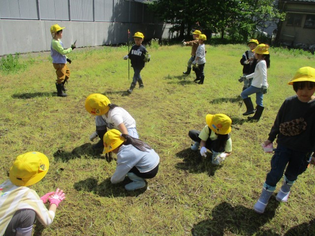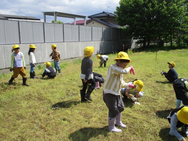 生活科で野菜づくりの学習が始まりました。思いを込めて選んだ野菜たちを植えるために、畑の草むしりをしました。おいしい野菜に育てるぞと気持ちが高まってきました。