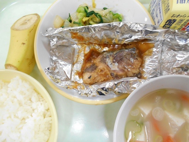 ごはん 牛乳 さばの銀紙焼き おひたし 呉汁 バナナ