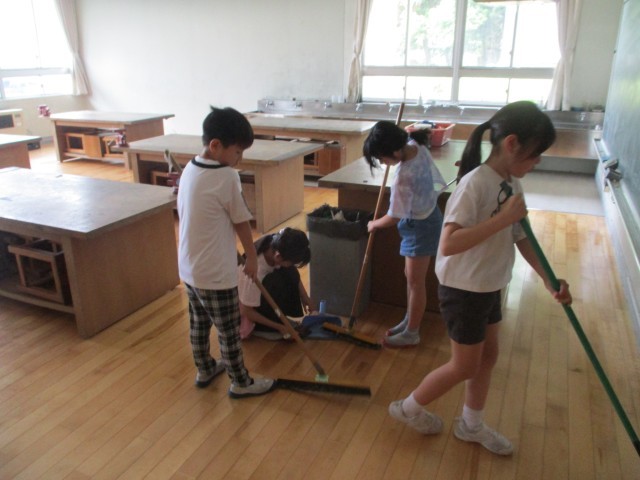 今日の図工の学習後、4年生の子どもたちが「昼休みに図工室の清掃をしてもいいですか?」と話しかけてきました。自分たちの使った場所を、使う前よりきれいにしようと、すみずみまで清掃していました。