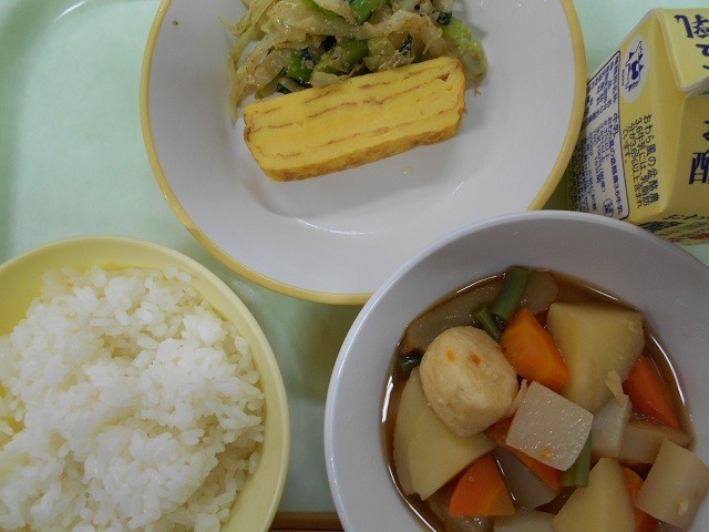 ごはん 牛乳 厚焼き卵 青菜のごま和え 関東だき