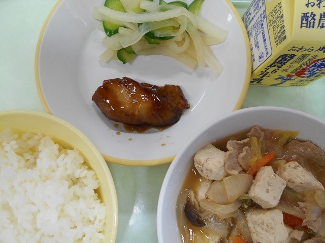 ごはん 牛乳 赤魚の照り焼き 酢の物 肉豆腐