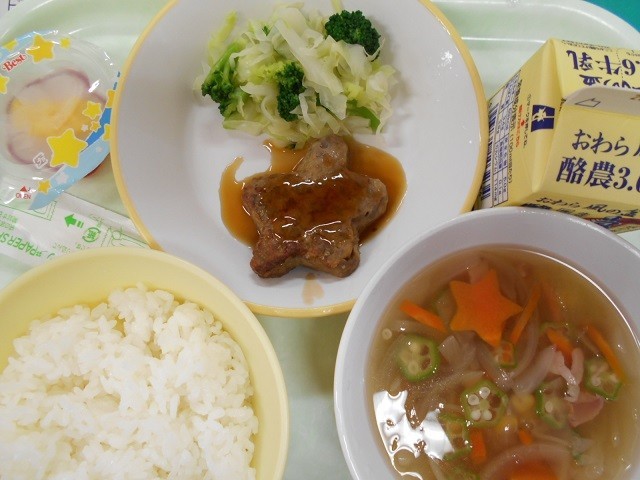 ごはん 牛乳 星形ハンバーグ そえ野菜 天の川スープ 七夕ゼリー