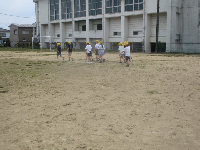 7月1日(火)3年生 算数科「長さを体感してみよう」 公開日 2025/07/03 更新日 2025/07/03 3年生 曇り空で日が隠れ、気温がそれほど高くない時間帯を利用して、算数科「長いものの長さをはかろう」の学習で、10mを予想してから測ったり、1kmを歩くのにかかる時間を計ったりしました。 10mを予想する活動では、自分の予想した長さとの違いに驚いている子どもが多かったです。 1kmを歩く活動では、大体13分前後かかりました。 長さの感覚を身につける大切な学習でした。