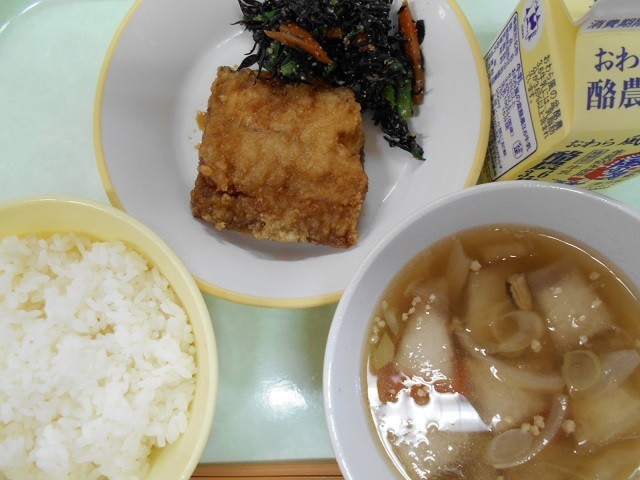 ごはん 牛乳 さばのレモン味 ひじきのごま和え 冬瓜スープ