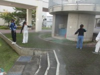曇り空で日が隠れ、気温がそれほど高くない時間帯を利用して、算数科「長いものの長...