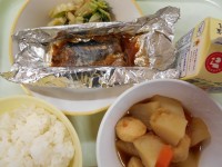 【今日の献立】ごはん 牛乳 さばの銀紙焼き えのきのごま和え 関東だき