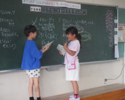 クラスで「上手な断り方」について考えました。言葉や伝え方をどのようにすればよいか考えて、実際にやってみることで、相手のことを考えて伝えることの大切さを実感していました。